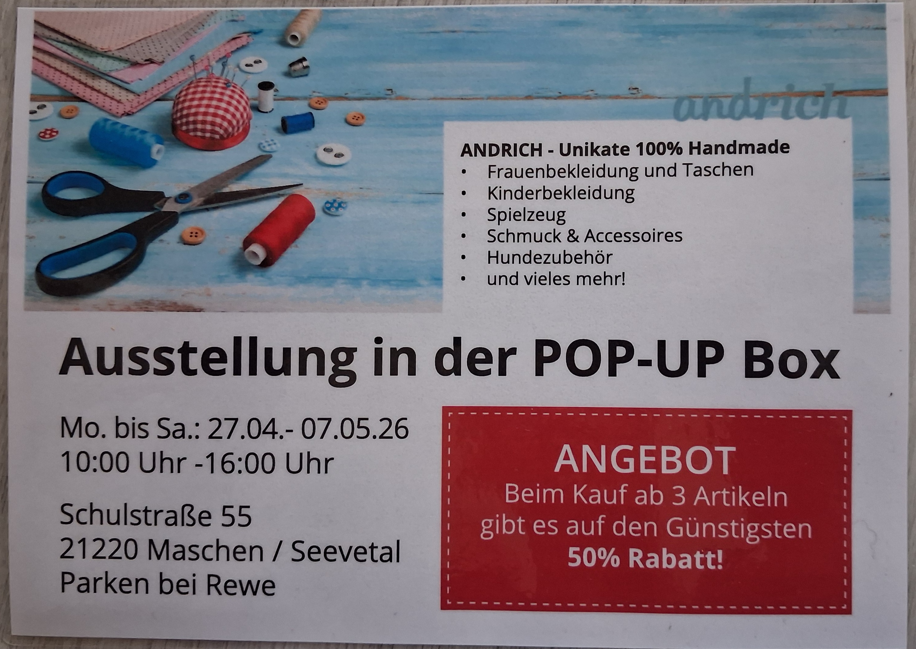 • Ort: PopUpBox, Schulstraße 55, 21220 Seevetal-Maschen